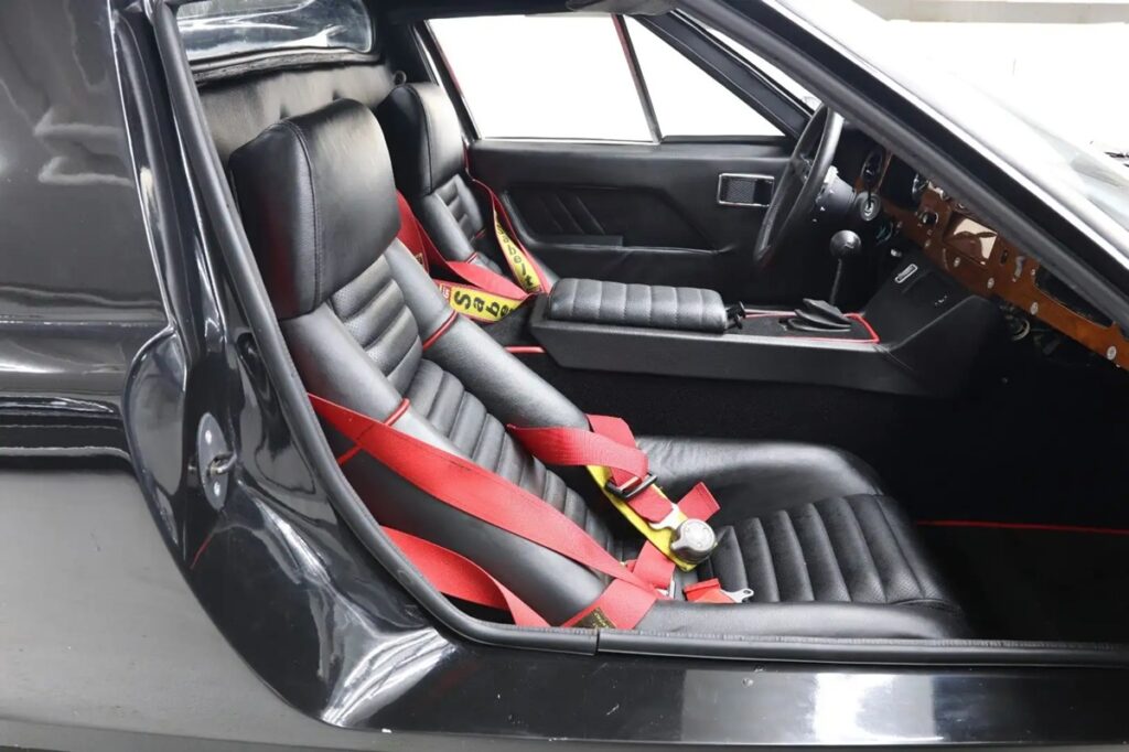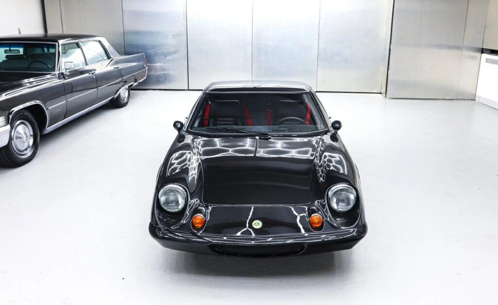 外観は、ブラック塗装、極めて低い車高、そして特徴的なくさび形のシルエットを備えた、クラシックな英国車らしい姿だ。まさにこのフォルムこそが、かつて「ヨーロッパ」をその時代で最も未来的なスポーツカーの一つにしたのである。