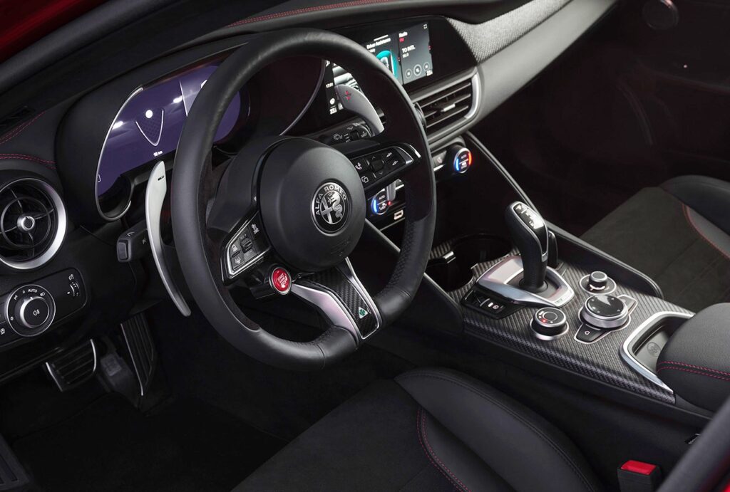 パワートレインにも改良が施される。ジュリアでは燃料噴射方式を刷新し、直噴とポート噴射を組み合わせたデュアルインジェクションを採用。インジェクターを6本から12本へ増設し、低負荷域での燃費性能と高負荷域での出力を両立した。これにより最高出力は従来の510hpから520hpへと向上している。一方ステルヴィオは従来型エンジンを継続採用する。