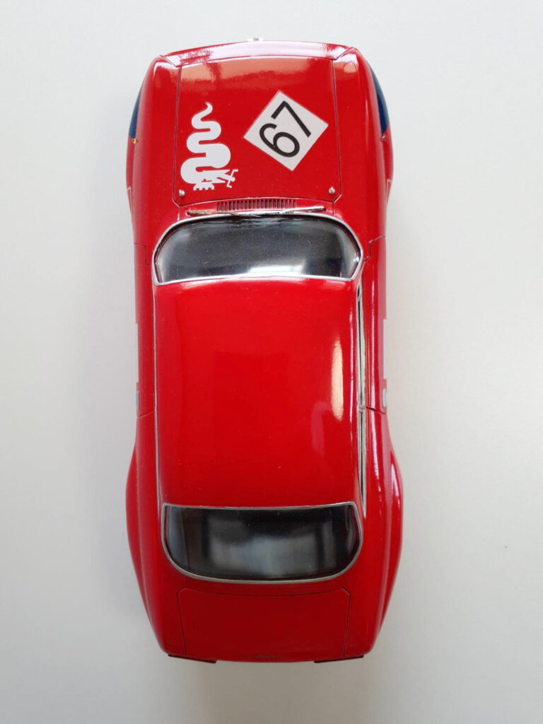 この「アルファロメオGTAm」も「アルファロメオ1750 GTV」をベースにグループ2ツーリングカー選手権2リッタークラスを制覇すべく、「アウトデルタ」が僅か40台を生産したレーシングカーである。