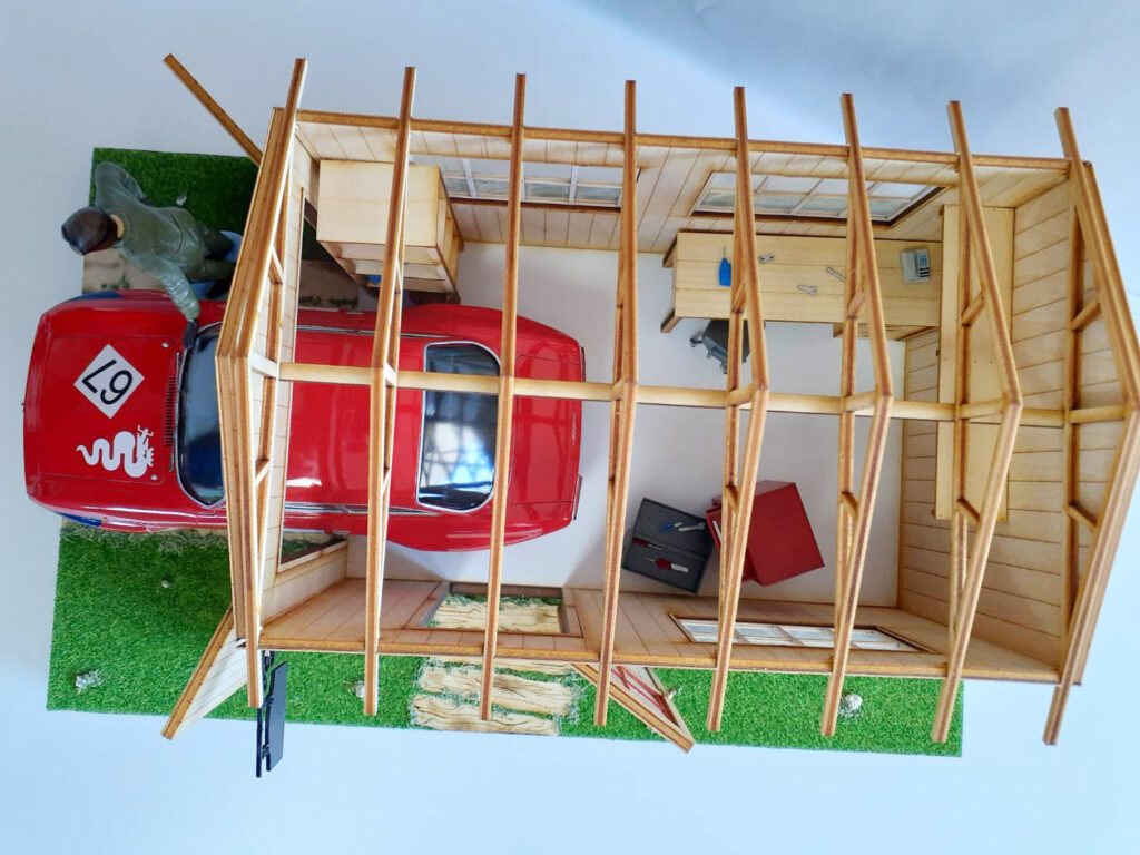 ガレージをドローン空撮したかのようなビュー。ガレージ内での作業もきっと楽しかったはず。