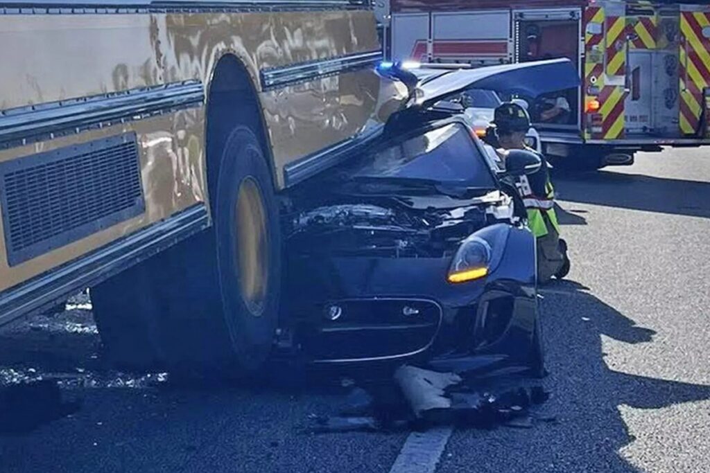 フロリダで発生した重大事故:ジャガーFタイプ(Jaguar F-Type)がほぼ減速せずにスクールバスに衝突した。乗員は軽傷で済んだ!