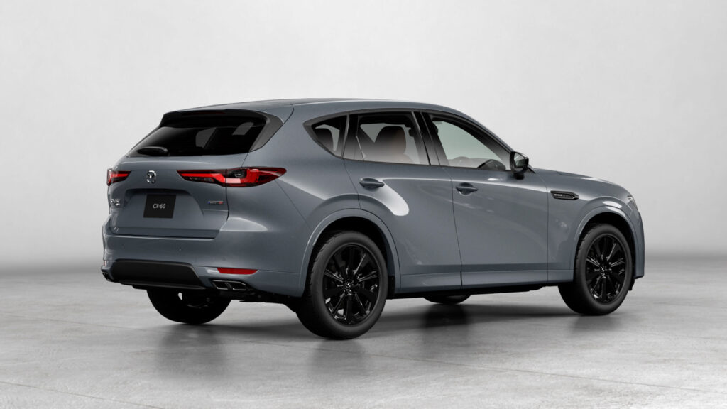デザイン面では、インテリアとエクステリアの質感向上が図られた。シフトパネルやコンソール、ドアトリムの加飾はマットブラックヘアライン仕上げへと変更され、より落ち着きと高級感を感じさせる仕立てとなった。さらに「CX-60」では、エグゾーストガーニッシュをブラックメタリック化し、外装の統一感を強化。ボディカラーにはポリメタルグレーメタリックが全機種に追加され、ジルコンサンドメタリックの設定も拡大された一方、ソニックシルバーメタリックは廃止された。