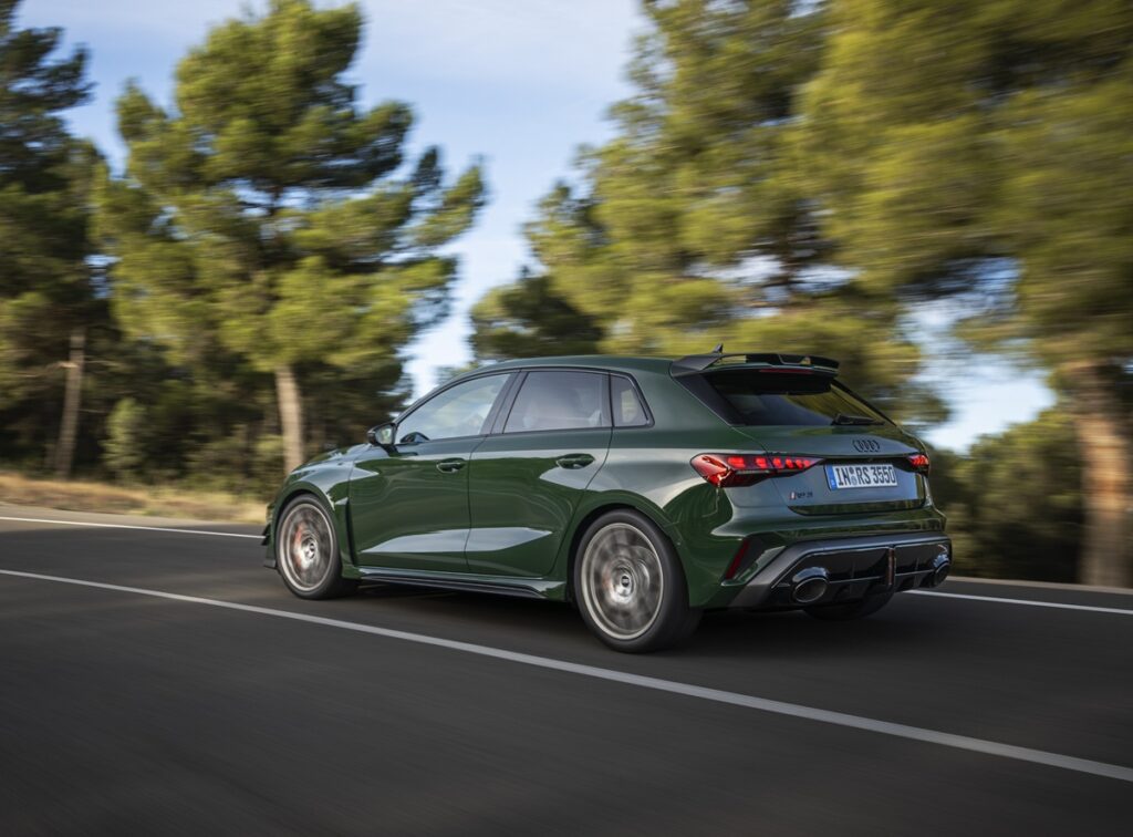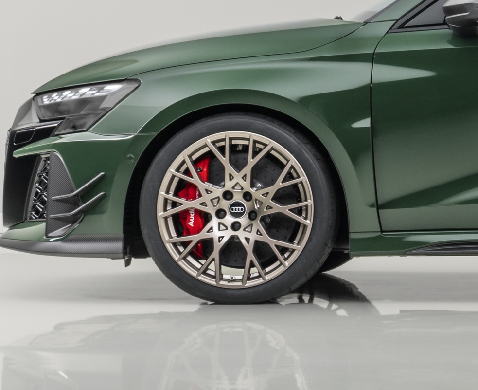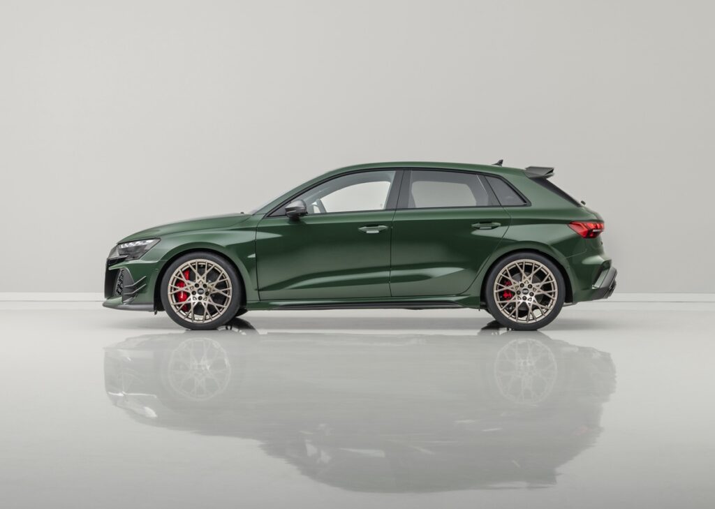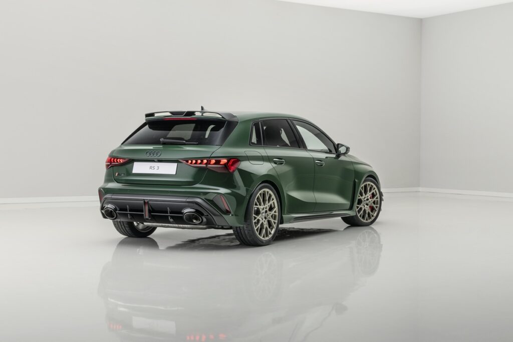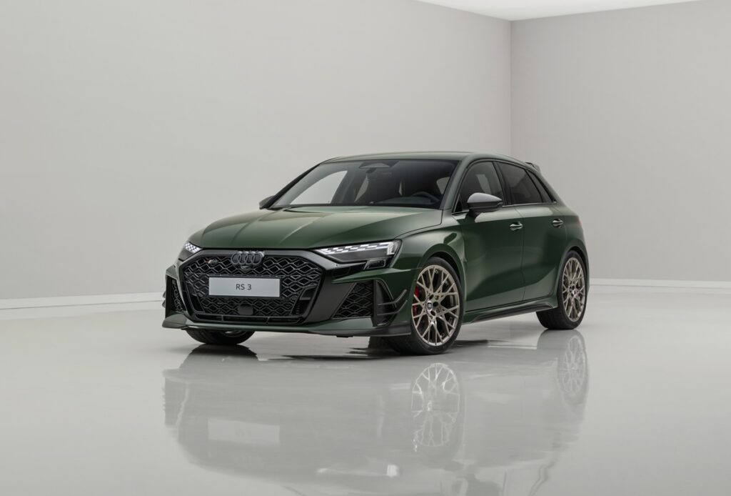 ボディカラーはデイトナグレー、グレイシアホワイトマット、そして特別色のマラカイトグリーンの3色を設定。このマラカイトグリーンは、かつてラリーシーンで活躍したAudi Sport quattroを想起させる象徴的なカラーであり、5気筒エンジンの歴史へのオマージュでもある。また、マトリクスLEDヘッドライトには専用演出が施され、ロック/アンロック時には点火順序を模した「1-2-4-5-3」のパターンで発光するなど、細部にまでこだわりが見られる。