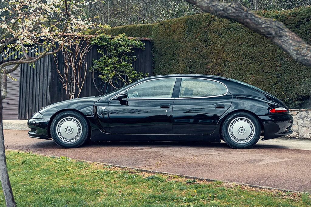 アルティオーリの計画は、世界最速かつ最先端のスーパーカー—コードネームEB110を開発することだった。わずか2年で開発は完了し、1991年9月15日にパリで発表される。しかし彼の構想にはもう1台のモデルが含まれていた。それが、1930年代のブガッティを彷彿とさせるラグジュアリーセダンである。