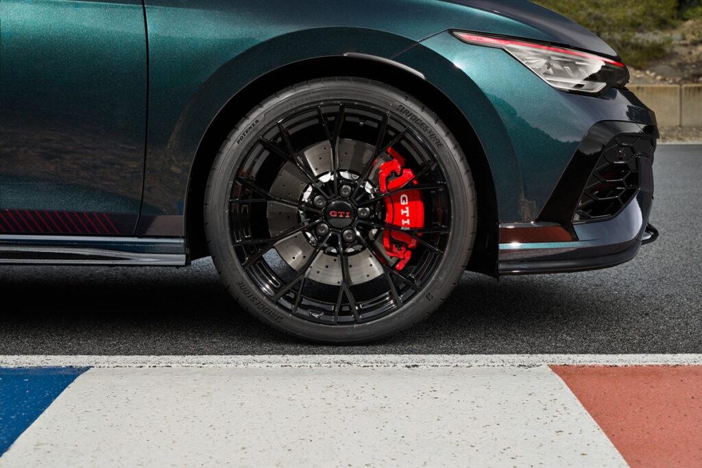 GTI Edition 50のオプション19インチ鍛造ホイールは、標準の「Queenstown」と比べて1本あたり3.3kg軽量化されている。