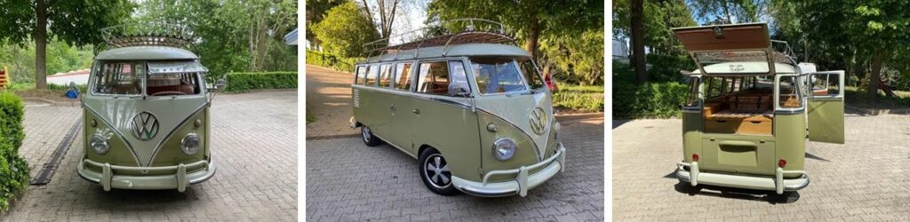 ドイツの中古車情報:VW T1サンバ デラックス。1962年式、コンディション評価1-の伝説的「ブリ(Bulli)」。キャンピング仕様に改造された自動車史の一ページと言えるVW T1が、現在、中古車マーケットで販売中だ。