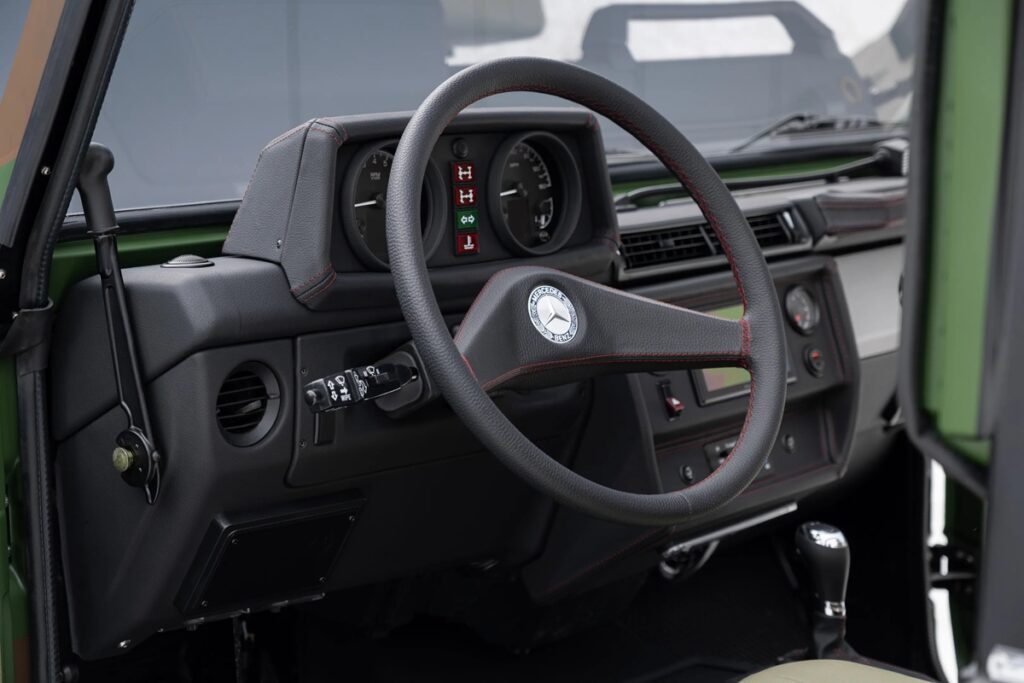 EMCによれば、ベース車両は以前のディーゼルモデルから流用されたものだが、顧客からの「より高い出力」を求める声が高まり、EMCはここでその要望を徹底的に実現した。これにより、かつてはどちらかといえばのんびりとした性格だった「ウルフ」は、軍用車ならではの頑丈さを保ちつつ、高性能な「Gクラス カブリオレ」のクラシックカーへと変貌を遂げた。デフロック、ラダーフレーム、ショートギア比はそのまま維持され、ただ、今やそのパワーは格段に増している。