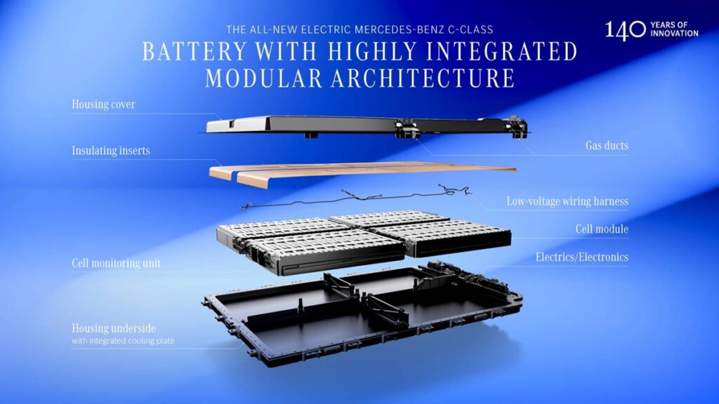 この駆動システムにより、車両は静止状態から4.0秒で時速100kmに達し、最高速度は201km/hに達する。しかし、「Cクラス」に慣れ親しんだユーザーにとってより重要なのは、このシステムが800Vアーキテクチャに基づいている点だろう。これにより、最大330kWの充電速度が可能となり、適切な充電源があれば、10分でさらに320km走行分のエネルギーを蓄えることができる。メルセデスは、「C 400 4MATIC EQ」の航続距離を最大760kmと約束している。