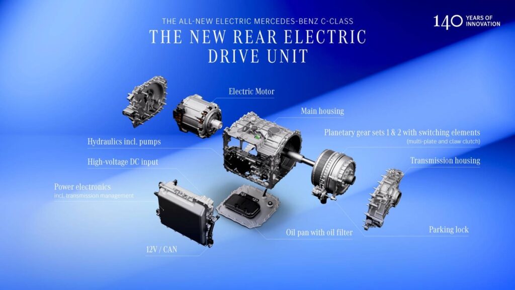 駆動系:2基の同期モーターがメルセデスC 400 4MATIC EQを駆動
