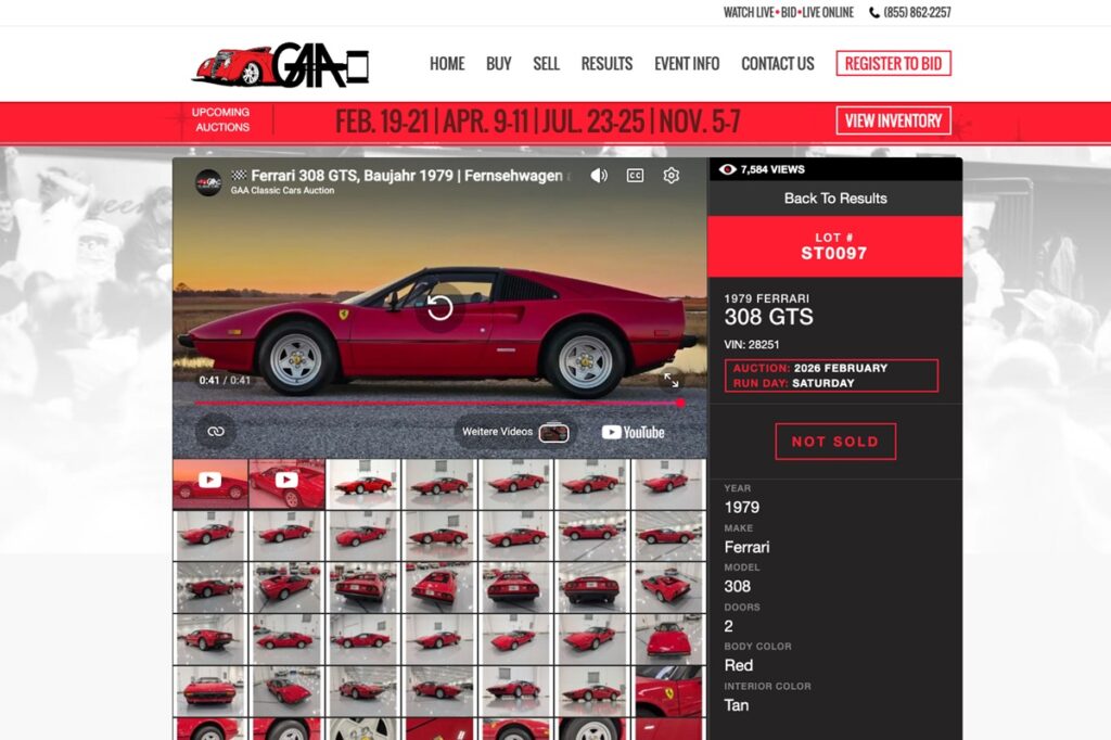 さらに興味深いことに、ノースカロライナ州グリーンズボロのGAA Classic Cars社は、2026年2月に、シャシー番号「28251」の「フェラーリ308 GTS」をオークションにかけようとしていたのだ。