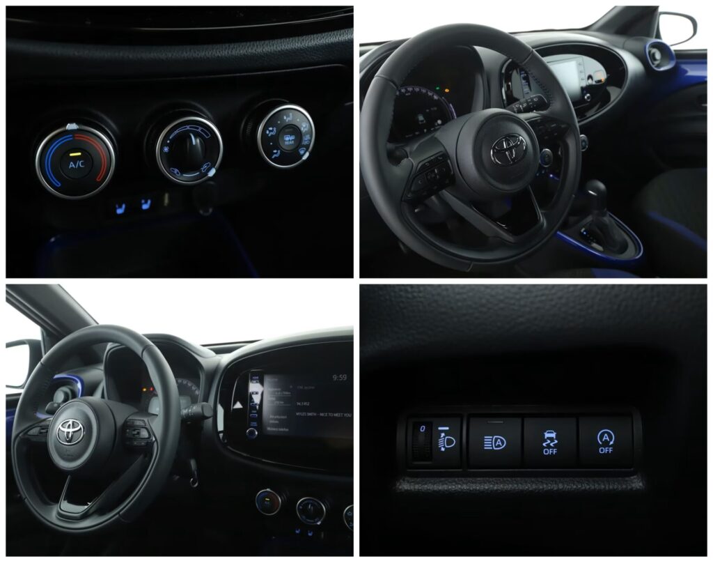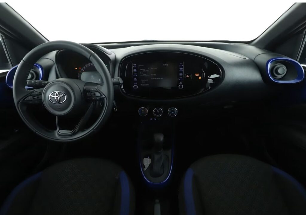 トヨタ アイゴX(アイゴクロス) パルス 1.0VVT-i S-CVT 年式:2023年8月走行距離:2,500キロ色:ジュニパーブルーメタリック/ナイトブラック内装:ブラックファブリックエンジン:1.0L 直3 自然吸気 VVT-i 1KR-FE 72PS(53kw)/93Nmハンドル:左ハンドルミッション:CVTドア:5Dr乗員:4名外形寸法:全長3,700×全幅1,740×全高1,525 mm