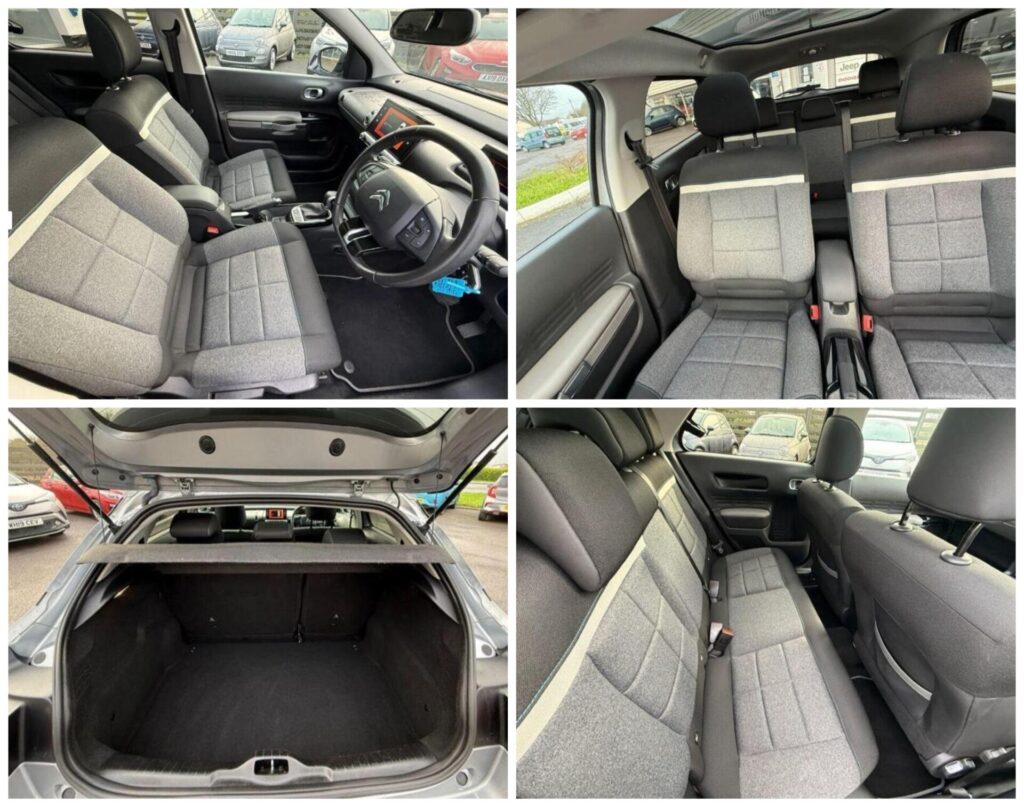 シトロエン C4カクタス フレイア 1.2 PureTech110 EAT6年式:2019年9月走行距離:38,479キロ色:キュミラスグレー内装:グレー×ブラックハンドル:右ハンドルミッション:EAT6ドア:5Dr乗員:5名外形寸法:全長4,170×全幅1,714×全高1,480mm装備:クルーズコントロール、パノラミックグラスルーフ、バックカメラ、スマホ対応インフォテインメントシステム